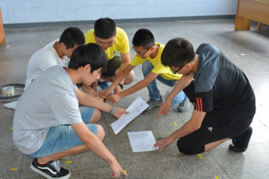 2016年,黑龙江省电子设计竞赛志愿者在布置比赛场地